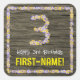 3. Geburtstag: Blumennummer, Imitate Holzbild, Nam Quadratischer Aufkleber