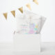 3. Geburtstag Gönnertaschen mit einem niedlichen Einhorn, umgeben von niedlichen Bildern eines Regenbogens, einer Wolke, einer Sonne, eines Eiscremes.