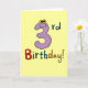 Für einen dritten Geburtstag ist die Hintergrundfarbe anpassbar. Ideal für eine Geburtstagsfeier oder als Geburtstagsgeschenk. Sie können sie ganz einfach personalisieren, indem Sie den Knopf "Anpassen" drücken.