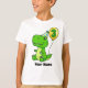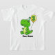 Ein niedlicher kleiner T-Rex-Dinosaurier lächelt beim Tragen eines Geburtstaghutes und eines Ballons, der an seinen Schwanz gebunden ist. Niedliches 3. Geburtstagsgeschenk für Ihr 3-jähriges Kind.