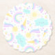 3. Geburtstagspapier Untersetzer mit einem lustigen Einhorn, umgeben von niedlichen Bildern eines Regenbogens, einer Wolke, einer Sonne, Eiscreme..