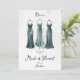 Glamour 3 Chic Dusty Blue & Gray Shades Bridesmaid kleidet Wasserfarbe Effekt Vorschlag Card. Entspannen Sie in zeitloser Eleganz mit unserer Vorschlagskarte mit 3 Brautkleider in den Farben Dusty Blue & Gray, die mit einem charmanten Aquarelleffekt ergänzt werden. Diese bezaubernde Karte zeichnet sich durch Stil und Eleganz aus und bietet ein Angebot voller Anmut und Charme. Stellen Sie sich drei elegante Brautkleider in einer Farbpalette von Dusty Blue & Gray vor, die alle mit Aquarellsteinen bemalt sind, die eine künstlerische und originelle Touch verleihen. Jedes Detail, von der sanften Farbkombination bis zur zarten Kleider-Präsentation, erinnert an ein Gefühl von Eleganz und Ausgeglichenheit. Der Aquarelleffekt schafft eine magische und romantische Atmosphäre, perfekt für einen Vorschlag, der ein Gefühl von Spannung und Schönheit vermitteln will. Jede Karte ist ein einzigartiges Kunstwerk, das den Empfänger überraschen und faszinieren soll. Das moderne und schicke Design dieser Karte macht sie zu einer idealen Wahl für Bräute, die gewollt sind, sich mit einem Angebot, das ihren einzigartigen Stil widerspiegelt, abzuheben. Ob Strandhochzeit oder Städtefeier, diese Karte verleiht jedem Anlass eine Touch von Eleganz und Glamour. Neben seiner ästhetischen Schönheit ist diese Karte auch praktisch und funktional. Es wird auf hochwertigem Papier gedruckt, wodurch eine elegante und dauerhafte Präsentation gewährleistet wird. Das Design kann leicht angepasst werden, um bestimmte Details der Hochzeit, fügen Sie eine personalisierte Touch zu jedem Vorschlag. Kurz gesagt, unsere Angebotskarte mit 3 Brautkleider in den Farben Dusty Blue & Gray mit Aquarellwirkung ist eine außergewöhnliche Wahl für Braut, die ein unvergessliches und elegantes Angebot suchen. Mit seiner Kombination aus Stil, Eleganz und Kreativität ist diese Karte die perfekte Ergänzung zu jedem besondere Anlass. Für Anfragen, Anpassungen oder mehr Details, kontaktieren Sie uns über das Messaging-System der Plattform. HINWEIS: Dieses Design wurde mithilfe künstlicher Intelligenz erstellt.
