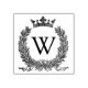 Stilvolle Gummi-Briefmarke mit Vintagem Monogramm Anfangsbuchstaben W, Kronen und Kranz. Verschiedene Größen und Modifikationen, Anpassungen sind verfügbar. Antiquitäten-Grafik, Retro-zeichnend Clipart, altes Bild für Postkunst, Scrapbooking, Label, Aufkleber usw.