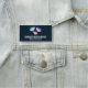 Namensschild mit hübschem Design. 3 Schmetterlinge in Aquarellfarbe, rosa, lila und grün gestrichen. Dunkelblauer Aquarellhintergrund.