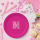 3 Initialmonogramm | Weiß auf heiß rosa Pappteller
