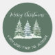 Diese schlanke, grüne Ferienaufkleber sind perfekt als Umschlag Aufkleber oder Geschenketikett. Sie zeichnen sich durch ein rustikales Aquarelldesign aus, mit drei schneebedeckten Kiefern-, Tannenbäumen oder Fichtenbäumen und eleganter Schriftzeichen-Kalligraphie-Schrift mit dem Lesen: Frohe Weihnachten! Es gibt unten Platz für eine kurze Notiz oder Nachricht. Optimiert für runde Aufkleber.
