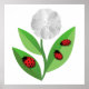 Ein originelles 3 wunderschönes Ladybugs und eine weiße Blume Digital Art Design.
