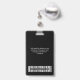 Personalisieren Sie dieses Abzeichen mit dem Namen Ihrer Mitarbeiter einfach mit Foto, Bar scannen und 3 verschiedenen Firmenlogos. Sie können 3 verschiedene Firmenlogos hochladen, ideal für Partnerschaften und Sponsoren. Ein einfaches Business-Design in Schwarz-Weiß-Farbtönen, das in Vorder- und Rücken-Größen vollständig anpassbar ist, serifenlose, einfache und moderne Schriftart und ein berufliches und klares Aussehen. Erhältlich mit Lanyard, Metallklammer oder mit Retraktikett. Keine Mindestbestellung.