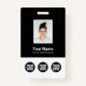 Personalisieren Sie dieses Abzeichen mit dem Namen Ihrer Mitarbeiter einfach mit Foto, Bar scannen und 3 verschiedenen Firmenlogos. Sie können 3 verschiedene Firmenlogos hochladen, ideal für Partnerschaften und Sponsoren. Ein einfaches Business-Design in Schwarz-Weiß-Farbtönen, das in Vorder- und Rücken-Größen vollständig anpassbar ist, serifenlose, einfache und moderne Schriftart und ein berufliches und klares Aussehen. Erhältlich mit Lanyard, Metallklammer oder mit Retraktikett. Keine Mindestbestellung.