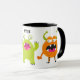 Drei niedliche kleine Cartoon-Monster mit personalisiertem Namen.