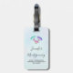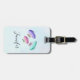 Gepäckanhänger mit hübschem Design. 3 Schmetterlinge in Aquarellfarbe, rosa, lila und grün gestrichen. Ein hellblauer Aquarell mit Hellrosa.