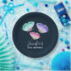 Papierservietten mit hübschem Design. 3 Schmetterlinge in Aquarellfarbe, rosa, lila und grün gestrichen. Dunkelblauer Aquarellhintergrund. Personalisieren Sie den Text Ihres Ereignisses.