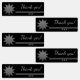 Beruflich aussehend, silberner Text, schwarz wasserdicht, danke Label. Design verfügt über 3 Sphären auf der Vorderseite und die Fähigkeit, es zu Ihrem eigenen zu machen. Fügen Sie Ihr Logo oder Ihr Foto hinzu. Ideal für Unternehmer und Unternehmen, um auf Verpackungen und Versand. Klicken Sie auf den Link "Weiter anpassen" und verwenden Sie unser Design-Tool, um diese Vorlage zu ändern. Erhältlich in mehreren Farben.
