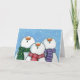 3 skurrile Schneemänner, die den fallenden Schnee in Ehrfurcht anstarren. Spaß Weihnachten Grußkarte. Aus einem Originalgemälde von 2008 entworfen, ist Lisa Marie Robinson