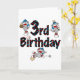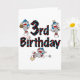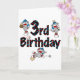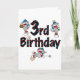 Drei kleine Socken-Affen mit blauen Baseballkappen zeichnen, schieben und auf unserem Socken-Affen-Baseball-3. Geburtstagsdesign mit Sockenaffen und coolem Text, der "3. Brithday" heißt.