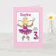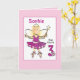 3 Year Old Cute Ballerina Cartoon Pink Birthday Karte