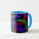 Enjoy your next cup of hot chocolate with this 3D 2D geometric hybrid coffee mug. This design features a colorful 3D design with a 2D center piece and custom text editing. Additional mug color options are available.
