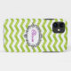 Dieses grün-weiße iPhone Gehäuse hat aufgrund des zweischattigen Farbdesigns einen dreidimensionalen Look. Es ist eine optische Täuschung, die dieses Zickzack Muster Pop macht! Farbe ist 'zarte Triebe'. Im antiken Rahmen ist der Ort für Ihren Namen. Sie können Ihren Telefonstil wählen. Klicken Sie auch auf "Text ändern", um Ihren Namen oder eine andere Personalisierung, wie z.B. ein Initial- oder Lieblings-Sprichwort, hinzuzufügen.