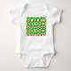 Dieser Babybodyanzug hat ein modernes Design von Würfeln in Weihnachtsfarben.