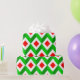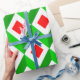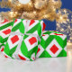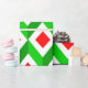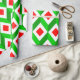 Dieses Verpackungspapier hat ein modernes Design von Würfeln in Weihnachtsfarben.