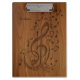 3D Debossed Clef Musical Notes on Wood Klemmbrett