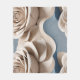3D-gerendertes Rosenmuster in Blautönen und Weiß, das auf einem weichen beigen Hintergrund mit leichter Textur für einen modernen Look schwebt