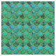 3D geometrisches Muster, grün und blau mit schimmerndem goldfarbenem Gitter.