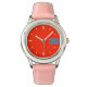 Kinderuhr aus Edelstahl mit rosa Lederarmband