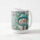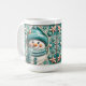 Add a splash of Christmas cheer to your coffee routine with this eye-catching 3D teal snowman design. The vivid, dimensional artwork creates a playful illusion of depth, making the scene and character appear to pop right off the surface.