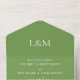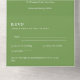 Foliage Green (Farbcode #769F51) und weiße Typografie, nur Text, mit Monogramm, minimalistisch, einfache schlichte Hochzeitseinladung mit einer abreißenden uAwg-Postkarte (3 in 1 je Bild). Element beinhaltet die Absenderadresse, eine Rücksendeadresse und Textvorlagenfelder für die Hochzeitsfeier und den Empfang nach Belieben (Text bearbeiten, um Ihre individuellen Bedürfnisse Anzug). Sie können auch Paare Initialen, Monogramm hinzufügen. Moderne und elegante, preisgünstige Einladung zum Anzug Ihrer Bedürfnisse.