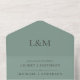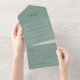 Dusty Grün und Schwarz Typografie, nur Text, mit Monogramm, minimalistisch, einfach schlichte Hochzeitseinladung mit einer abreißenden uAwg-Postkarte (3 in 1 je Bild). Element beinhaltet die Absenderadresse, eine Rücksendeadresse und Textvorlagenfelder für die Hochzeitsfeier und den Empfang nach Belieben (Text bearbeiten, um Ihre individuellen Bedürfnisse Anzug). Sie können auch Paare Initialen, Monogramm hinzufügen. Moderne und elegante, preisgünstige Einladung zum Anzug Ihrer Bedürfnisse.