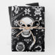 19" x 29" Verpackungspapierblätter, Matte 19" x 29", 3pc. Schwarz-Weiß-Skull-Druck, Schwarz, Weiß