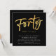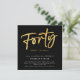 Dies ist eine moderne schwarz-goldene 40. Überraschung Geburtstagsfeier Einladung. Es ist ein einfaches und stilvolles handgeschriebenes Skriptdesign in klassischem Schwarz, Weiß und Gold. Bitte kontaktieren Sie den Designer, wenn Sie Fragen zu diesem Design haben.