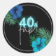 40 & Fab Neon Blue Silver Black Tropical Birthday Runder Aufkleber