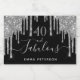 Einfaches und elegantes 40. Geburtstagsweinlabel. Ein klassischer schwarzer Hintergrund mit Imitaten silberne Glitzer Tropfen, Farbe Tropflook. Mit dem Text: 40 und fabelhaft. Personalisieren und fügen Sie einen Namen und ein Datum hinzu. Geburtsdatum oder Geburtsdatum des Party. Hellgrauer Text. Das Wort Fabulous wird mit einem modernen handgeschriebenen Stilskript mit Swashes geschrieben.