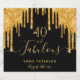 Einfaches und elegantes 40. Geburtstagsweinlabel. Ein klassischer schwarzer Hintergrund mit goldenen Glitzer-Tropfen aus Imitaten, Maltropfen-Look. Mit dem Text: 40 und fabelhaft. Personalisieren und fügen Sie einen Namen und ein Datum hinzu. Geburtsdatum oder Geburtsdatum des Party. Goldener Text. Das Wort Fabulous wird mit einem modernen handgeschriebenen Stilskript mit Swashes geschrieben.