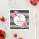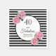Eine Serviette für ein 40. Party. Klassische schmale schwarz-weiße Streifen als Hintergrund. Mit mädchenhaften und femininen rosa Rosen als Dekoration. Ein Rahmen mit dem Text: 40 und Fabulous und Vorlagen für Name und Datum.