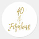 40 und fabelhafte White and Imitate Gold Foil Geburtstagsticker. Der 40 und Fabulous Aufkleber verwendet die beliebte Goldfolien-Typografie. Dieser Aufkleber wird zum Siegel der 40 wunderschönen Geburtstagshüllungen verwendet.
