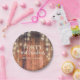 Rustikales Braunholz mit Streichholzpapier-Tellern. Bearbeiten Sie Schriftart und Farbe, um sie weiter anzupassen.