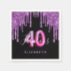 Eine trendige und glamouröse 50. Geburtstagsparty mit Papierserviette. Ein klassischer schwarzer Hintergrund mit dunkelfarbenen lila Imitaten Glitzer Tropfen, Farbe Tropflook. Mit dem Text: 40 und fabelhaft. Personalisieren und einen Namen hinzufügen. Lila und rosa Text. Das Wort Fabulous wird mit einem modernen handgeschriebenen Stilskript geschrieben. Alter 40 wird mit einem Ballonstil-Skript geschrieben.