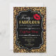40. Geburtstag Einladung. Elegantes Schwarz-weißes Design mit Imitate Glitzer Gold. Verfügt über Rote Lippen Kuss, Leopardendruck, Konfetti und Script-Schriftart. Ideal für eine elegante Geburtstagsfeier. Vierzig Fabelhaft! Nachricht, wenn Sie weitere Anpassungen benötigen.