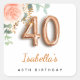 Für ein elegantes und feminines 40. Geburtstagsfest.. Party. Ein schick weißer Hintergrund. Dekoriert mit einer Rose Gold und rot rosa Rose Blume, florale, grüne Eukalyptus Blätter, Sprigs, Grün und Imitat Goldsprigs. Personalisieren und einen Namen. Schwarze und goldene Buchstaben. Der Name ist mit einem modernen handgeschriebenen Stilskript geschrieben. Nummer 40 ist mit einem goldenen Schriftart im Ballonstil geschrieben.