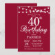 40. Geburtstag Einladung mit String Lights. Burgundy Red Background. 13. 15. 16. 18. 20. 21. 30. 40. 50. 60. 70. 80. 90. 100. Jedes Alter. Für weitere Anpassungen klicken Sie bitte auf die Schaltfläche "Anpassen" und verwenden Sie unser Designwerkzeug, um diese Vorlage zu ändern.