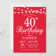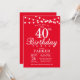 40. Geburtstag Einladung mit String Lights. Roter Hintergrund. 13. 15. 16. 18. 20. 21. 30. 40. 50. 60. 70. 80. 90. 100. Jedes Alter. Für weitere Anpassungen klicken Sie bitte auf die Schaltfläche "Anpassen" und verwenden Sie unser Designwerkzeug, um diese Vorlage zu ändern.