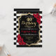 40. Geburtstag Einladung Elegantes Schwarz-weißes rotes Design mit Imitat Glitzer. Schwarzweißstreifen mit rote Rosen. Ideal für eine elegante Geburtstagsfeier.