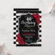Party Einladung zum 40. Elegantes Schwarz-weißes rotes Design mit Imitaten Glitzer Silber. Einladende Karte mit schwarz-weißen Streifen, Script-Schriftart und rote Rosen. Ideal für ein stilvolles Meilenstein am Tag. Kann für jedes Alter personalisiert sein.