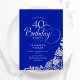 40. Geburtstag Elegant Royal Blue Silver Rose Einladung