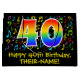 Dieses lustige, lebendige und farbenfrohe Geburtstagsgeschenk-Design zeigt eine große Zahl "40" mit einem inspirierten Regenbogenspektrum-Muster, zusammen mit der Meldung "Happy 40 th Birthday" und einem bearbeitbaren Namen. Ein Teil des Hintergrundes weist farbenfrohe Musiknoten und Symbolmuster auf. Eine Geschenktasche wie diese kann verwendet werden, wenn Geschenke verpackt werden, die einem Musikkomponisten, einem Sänger, einem Musiker oder jemand anderem zur Feier ihres vierzigsten Geburtstages gegeben werden. [~Z0000425]