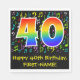 Dieses lustige, lebendige und farbenfrohe Geburtstagsthema Papier Serviette Design zeichnet sich durch eine große Zahl "40" mit einem Regenbogenspektrum inspirierten Muster aus. Es enthält auch die Meldung "Happy 40 th Birthday", und einen benutzerdefinierbaren Namen. Ein Teil des Hintergrundes hat farbenfrohe Musiknoten und Symbolmuster. Geburtstagsbespiele wie diese können sich bei einem Party, das zur Feier eines Musikers, Sängers, Komponisten oder eines anderen 40. Geburtstags abgehalten wird, gut nutzen lassen. [~Z0000421]