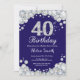 40. Geburtstag Navy Blue und Silver Diamond Einladung